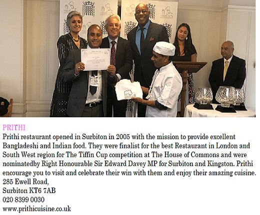 BEST RESTAURANT LONDON SW REGIONTIFFIN CUP AWARDS WINNER 2019HOUSE OF COMMONS NOMINATED BY ED DAVEY MP